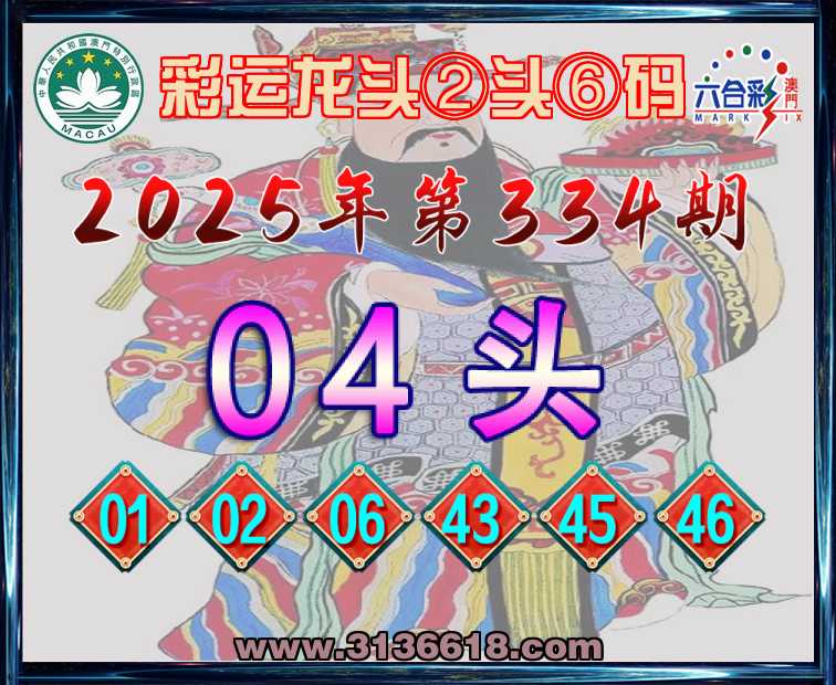 334期:《彩运龙头》  ♣️②头⑥码 ♣️【04头】开:猴46准上榜高手