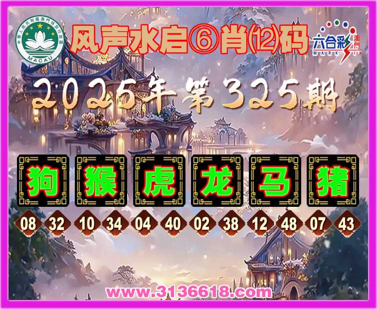 325期: ⌚《风声水启》⑥肖⑿码⌚【狗猴龙马猪】开:虎04准上榜高手