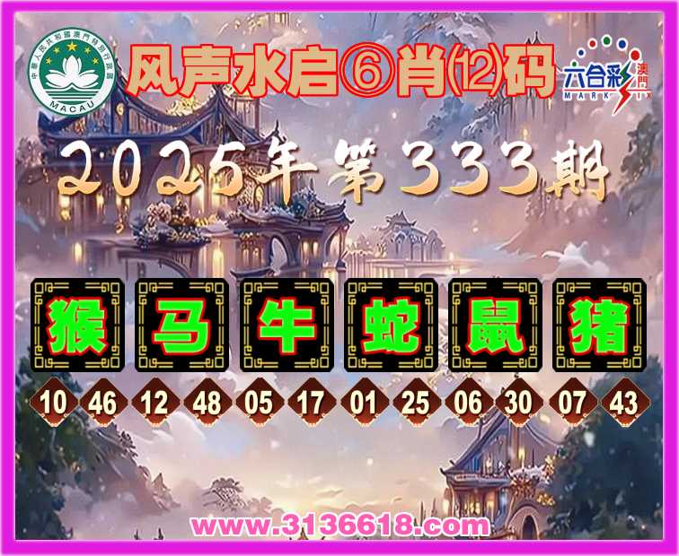 333期: ⌚《风声水启》⑥肖⑿码⌚【猴马牛蛇猪】开:鼠06准上榜高手