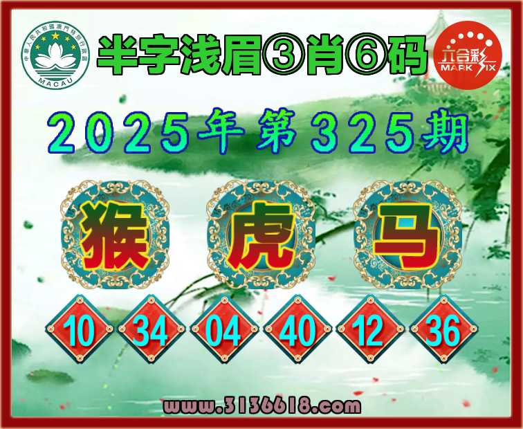 325期:【半字浅眉】 ♥️③肖⑥码♥️【猴马】开:虎04准上榜高手