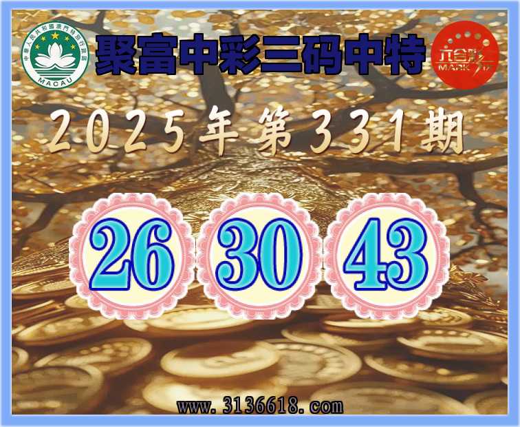 331期: 聚富中彩 ⛩️三码中特⛩️【26.30.43】开:26准上榜高手