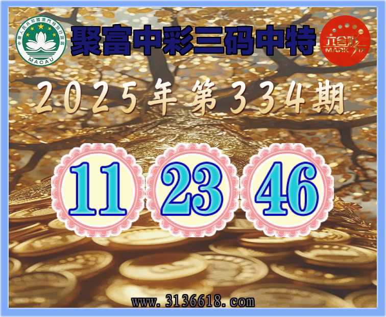 334期: 聚富中彩 ⛩️三码中特⛩️【11.23.46】开:46准上榜高手